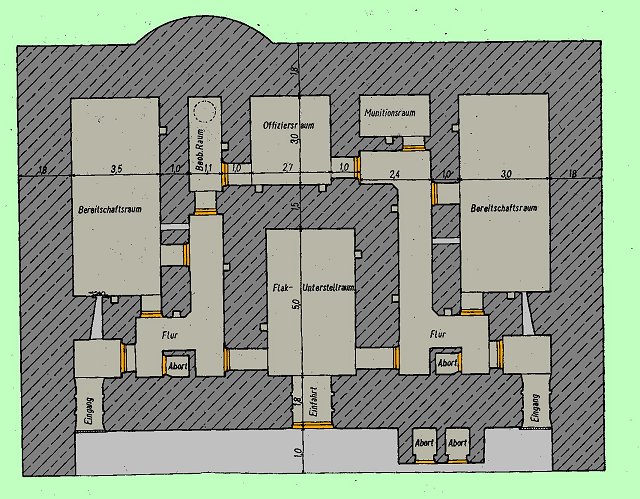 Grundriss einer Flak-Kasematte Quelle: Denkschrift über die Niederländische Landesbefestigung, OKH 1941 |