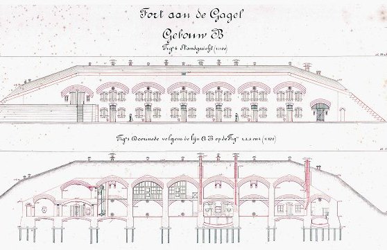 Das Fort liegt nördlich von Utrecht am Gageldeich, von dem es auch seinen Namen erhalten hat. Seine Aufgabe bestand im Schutz der Deiche von Gagel und Kerkeind, die Flankierung des Klopschen Deiches und der entsprechenden Inundationsschleusen. Als reines Erdwerk in Form einer Redoute wurde Fort aan de Gagel zwischen 1819 und 1821 angelegt. Ab 1848 wurde das Fort laufend modernisiert. So wurde zwischen 1850 und 1852 das bombensichere Wachthaus gebaut, welches eine Größe von 16 mal 16 Meter aufweist und rundum Schießscharten für Infanteristen aufweist. Auf dem Dach des Wachthauses konnten zwei 15 cm Haubitzen aufgestellt werden. 1880 wurde die zweistöckige bombensichere Kaserne gebaut, in deren Keller sich ein Pulvermagazin befindet. In dem Wall wurde eine Remise mit Keller zur Aufnahme von Artilleriegranaten gebaut. Ein Munitionsaufzug förderte die Munition aus dem Keller nach oben. Auf dem Wall standen vier glatte 15cm Haubitzen, vier lange und vier kurze 12cm Kanonen mit gezogenen Rohren. Zwei Mörser vervollständigten die Bewaffnung. Im Mobilisierungsfall konnten in dem Fort insgesamt 159 Mannschaften, sechs Unteroffiziere und 3 Offiziere untergebracht werden. Im Jahre 1939 wurden auf dem Fort drei Gruppenunterstände vom Typ P gebaut. Durch die frühzeitige niederländische Kapitulation ist es um Fort Gagel zu keinen Kampfhandlungen gekommen. Wie die deutsche Wehrmacht das Fort während der Besetzung genutzt hat, ist nicht mehr bekannt. Nach dem 2. Weltkrieg wurde das nicht weiter militärisch genutzt, so daß es schnell anderen Verwendungen zugeführt werden konnte. Verschiedene Vereine nutzen heute das Fort, so z.B ein Verein für Funkamateure. Das Wachthaus wird durch ein Tonstudio genutzt. Fort aan de Gagel kann frei besichtigt werden.