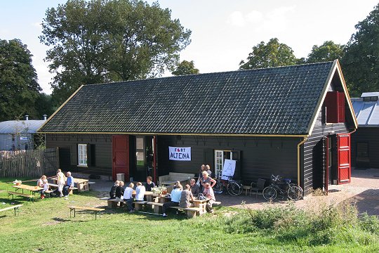 Campingplatz und in dem Wachthaus befindet sich ein Café.