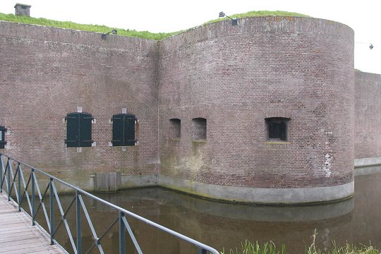 War Muiden im Mittelalter noch der Vorhafen von Utrecht, wurde es später in die Verteidigung von Amsterdam integriert. Überall in dem Städtchen kann man Kasematten und Kasernen finden. Ab 1577 sind um die Stadt Muiden bastionierte Erdwälle angelegt worden. Mit der Aufnahme der Festung Muiden in die Stellung von Amsterdam sind die Erdwälle zwischen 1877-1879 modernisiert worden.