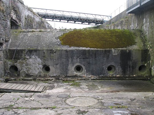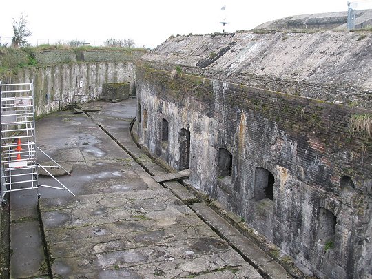 Firma Gruson. Der trockene Graben wurde durch Kaponnieren geschützt, die mit