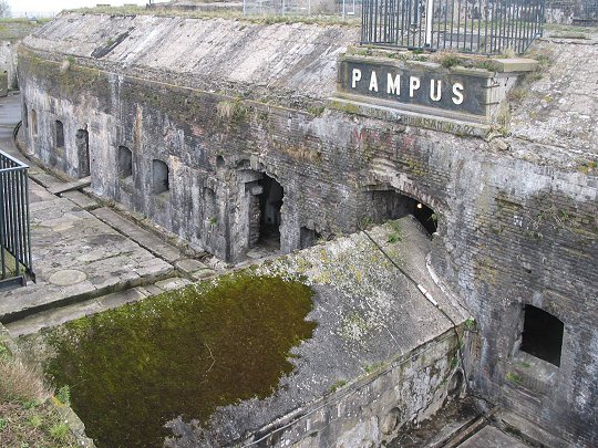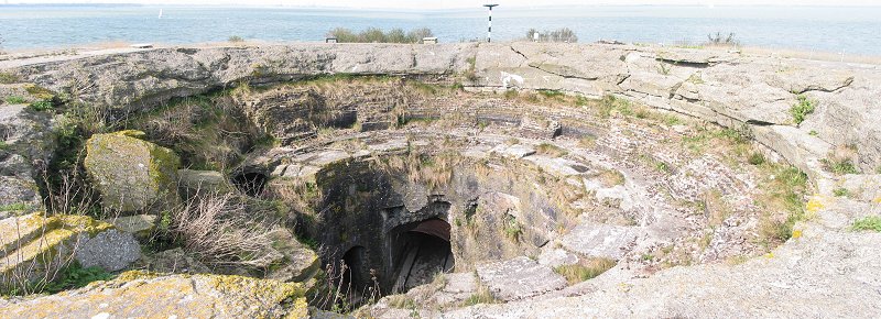 Fort mit zwei Panzertürmen á zwei 24cm L/35 Kanonen, mit einer Reichweite von