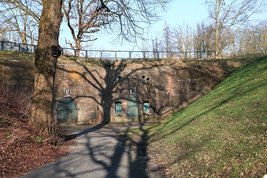Gußstahlkuppel versehen waren. Von den drei Kasematten sind heute noch zwei mit