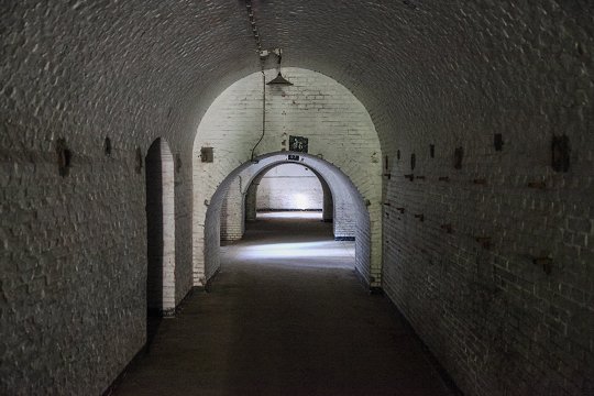 Das bombensichere Reduit ist fünfeckig und besteht aus einer Eskarpgallerie,