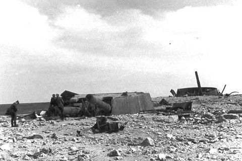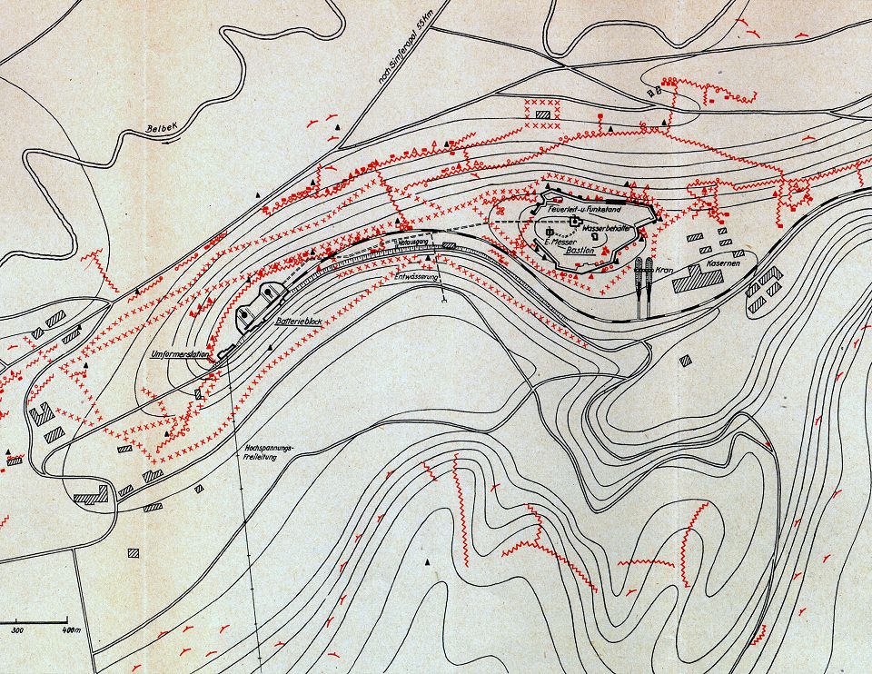 Lageplan der Panzerbatterie Maxim Gorki I Quelle: "Nachtrag zu den Denkschriften über fremde Landesbefestigungen" des OKH vom 01.04.1943 |
