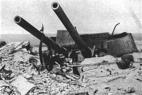 An der Angriffsvorbereitung waren Batterien mittleren, schweren und überschweren Kalibers beteiligt, die vom 6.6. bis 17.6.1942 (Angriffstag) rd. 750 Schuß, davon die Hälfte am Vormittag des 17.6., abgaben. Am 17.6., 13.30 Uhr, wurden Stukabomben aus 20 Maschinen auf die Kampfanlagen abgeworfen. Durch das planmäßige Zerstörungsfeuer wurden Drahtsperren zerrissen und Minenfelder verschüttet. Granat- und Bombentrichter erleichterten das vorgehen der Sturmtruppen. Die Besatzungen der Außenverteidigung wurden großenteils vernichtet, ihre leichten Kampfanlagen vielfach zerstört. Der westliche Panzerturm erhielt einen Streiftreffer, der ein Geschütz ganz, das andere teilweise ausschaltete, der ostwärtige einen Volltreffer auf die Rohre, der beide Geschütze unbrauchbar machte. Der unterirdische Zugang zum E-Meßstand wurde abgequetscht, alle übrigen Eingänge und die Eisenbetondecke des Geschützblockes blieben unversehrt. Die unter Tage befindliche Besatzung wurde nach ihren Angaben durch die Beschießung kaum beeindruckt.