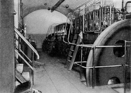 Maschinenraum mit Motorenumformer und Schalttafel |