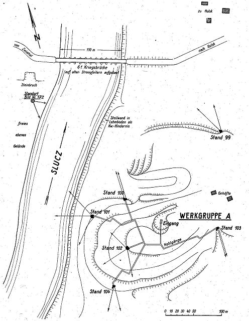 Lageplan der Werkgruppe A bei Zwiahel Quelle: "Denkschrift über die russische Landesbefestigung" OKH Gen.St.d.H. 1942 |