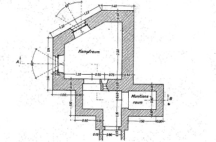 Grundriss MG-Nest mit betonierten Zugang und Stahlscharte |