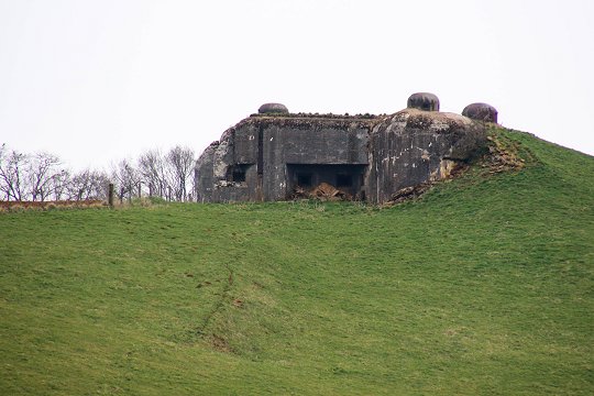 Die Kasematte ist auf einer privaten Weide frei zugänglich und gut sichtbar.