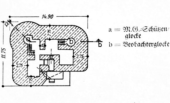 Für letztere kommt einmal eine mit der Bauwerksdecke bündig abschließende Glocke mit nur einer Deckenbohrung für Rundblickfernrohr oder eine, wie die Mehrschartenglocken hochgezogene, mit drei Sehschlitzen und Deckenbohrung für Rundblickfernrohr versehene Panzerglocke (cloche observatoire) zur Verwendung. Vielfach sind diese selbständigen Beobachtungsglocken an geeigneten Stellen in Zwischenwerke mit eingebaut.