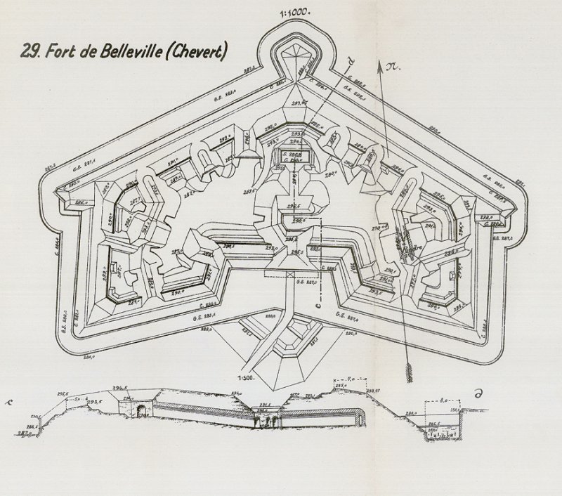 Fort Belleville wurde zwischen 1875 und 1877 als eines der "Panikforts" aus Bruchstein erbaut. Das Fort hat eine typisch Polygonale Form (ähnlich der preußischen Einheitsforts). Belleville ist nicht im Rahmen der Modernisierung der anderen Forts weiter ausgebaut worden. Es bekam nicht einmal weitreichende Artillerie unter Panzerschutz, obwohl es anfänglich als Artilleriefort ausgelegt war. Die ursprüngliche Besatzung bestand aus vier Offizieren und 160 Unteroffiziere und Mannschaften. Als Bewaffnung dienten anfangs drei lange Kanonen 155mm, fünf Kanonen 138mm, zwei 7cm Geschütze und ein 22cm Mörser. Aufgrund seiner Lage gehörte es nicht mehr zur ersten Verteidigungslinie und diente nach Ausbruch des 1. Weltkrieges nur noch als Truppenunterkunft.